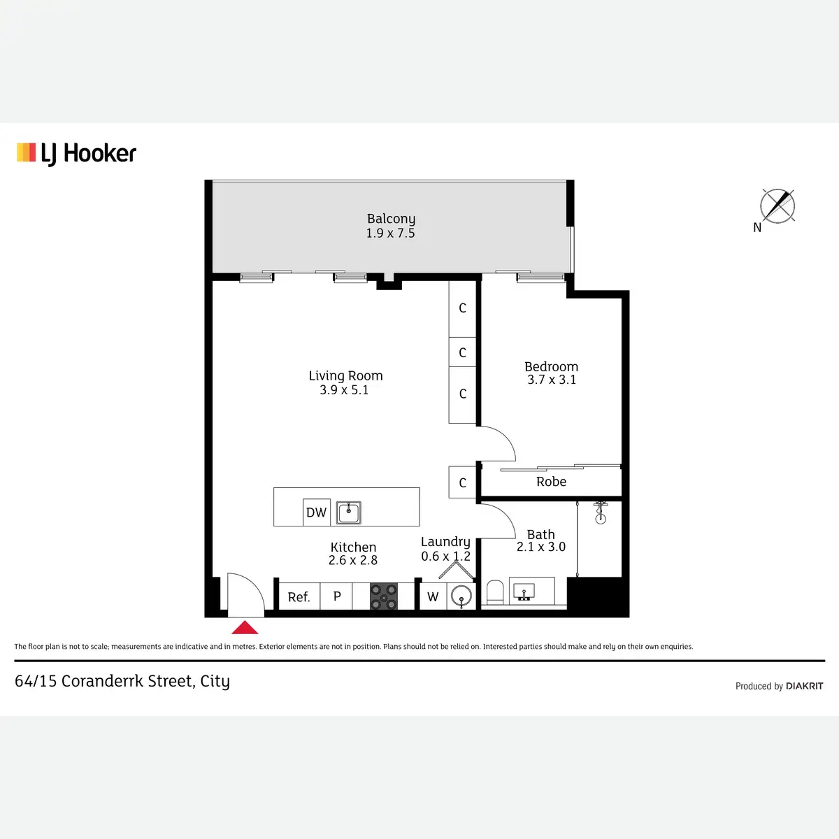 - Internal living area: 57m2