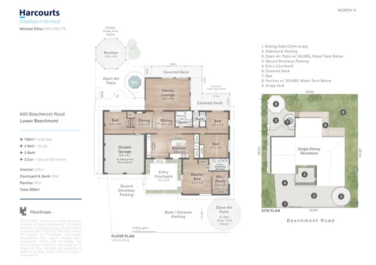Additional features include a double lock-up garage with automatic doors and workshop area, ample under-house storage, and two large in-ground concrete water tanks (approx. 60,000L capacity), with the top of one cleverly transformed into a covered entertaining gazebo.
