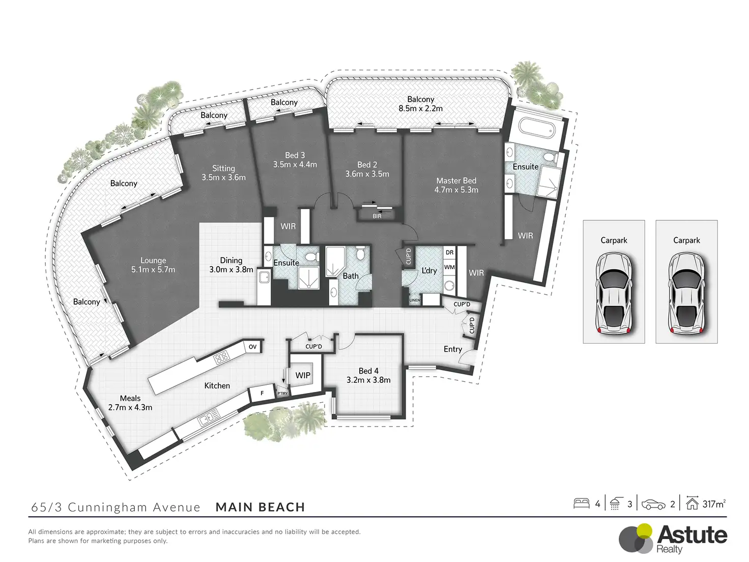 - Open floor plan seamlessly connecting to expansive balconies and versatile entertaining areas.