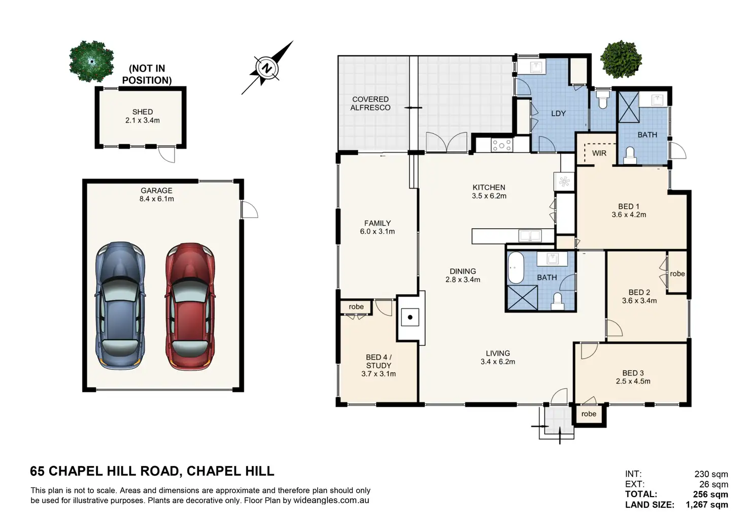 The main bedroom has ceiling fans and air conditioning, beautiful garden views as well as a walk-in robe with built-in shelving and drawers, and a large ensuite. Two additional bedrooms are positioned within easy reach of the family bathroom.