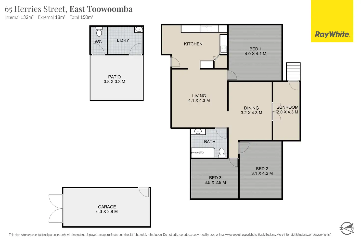 3 Bed • 1 Bath • 1 Car • 556m²