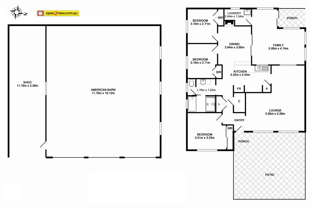 3 Bed • 1 Bath • 2 Car • 28327.9949568m²
