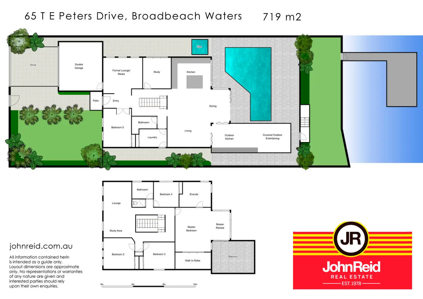 * Five bedrooms, the voluminous master retreat boasts a private sitting area, large spa ensuite, walk in wardrobe and huge balcony with absolutely magical views day and night.