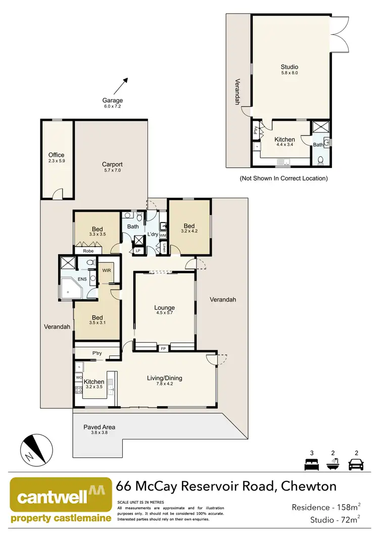 Private at the end of a bitumen road, the driveway, flanked by mature gums and rolling pasture, gives glimpses of what lies ahead, beckoning you on with enthusiasm. Elevated with views of the surrounding landscape is a well-designed three-bedroom home with attention to detail. Vaulted timber-clad ceilings, double glazing throughout, reclaimed rosewood solid wood flooring, and double brick walls help to create a very liveable home. The floorplan features a dual north and west-facing open-plan kitchen with dining and living. The kitchen provides bespoke timber cabinetry and a benchtop for additional seating, a Miele electric cooktop, a dishwasher and a double oven, and a large walk-in pantry. The dining has a sliding door leading to the north-facing terrace, the living to the west verandah and central to the room is a double-sided solid wood heater and a split system. A hall leads to a large second living room with a Castlemaine stone fireplace surrounding the double-sided wood heater. The main bedroom has exterior access, a walk-in robe and an ensuite with a spa bath, a shower, vanity and toilet. Of the two further bedrooms, one has built-in robes, and the second has stunning views. Servicing the bedrooms is a bathroom with a shower, vanity, toilet and access to the laundry with storage and exterior access to the double carport. A west-facing verandah provides an alfresco entertaining space with uninterrupted views towards Mount Tarrengower. Internal details include solar hot water, underfloor heating in the bathrooms, ceiling fans, and carpet in all bedrooms. Attached to the carport is a multifaceted space with the potential of a studio/ home office or fourth bedroom. This property is on tank water with three water tanks, a bore and dam water for irrigation.