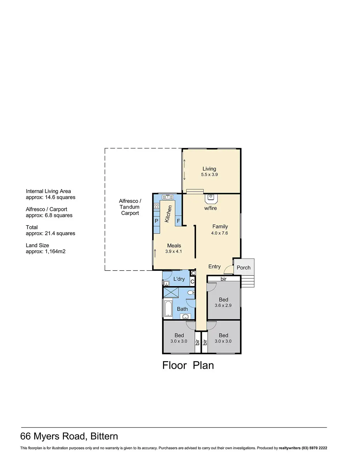 3 Bed • 1 Bath • 2 Car • 1164m²