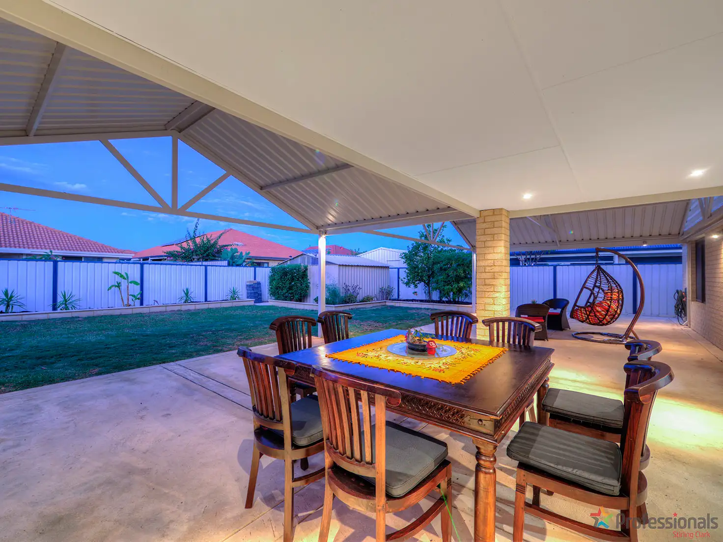 -Alfresco area with 2 huge x gabled patios with feature lighting
