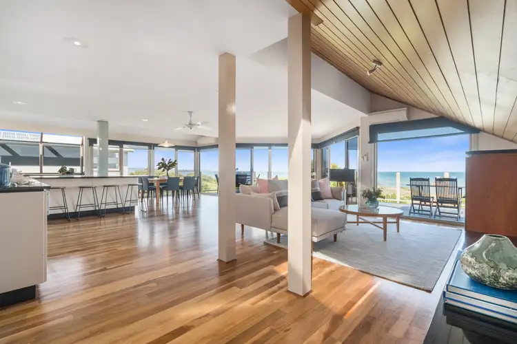 Architecturally designed, the point of the home frames each spectacular angle, mimicking the shape of a boat and standing out above the neighbours with three levels of breathtaking beachfront bliss. Capturing unparalleled views from every corner of the open-plan living domain with floor-to-ceiling glass, the first floor is an authentic entertainers' oasis with sliding doors opening the home to the expanse of the bay. American Red Cherry cabinetry and spotted gum timber floors add to the ambience, while the kitchen is a true performer with stainless steel appliances (Miele cooktop) and a large stone-island.