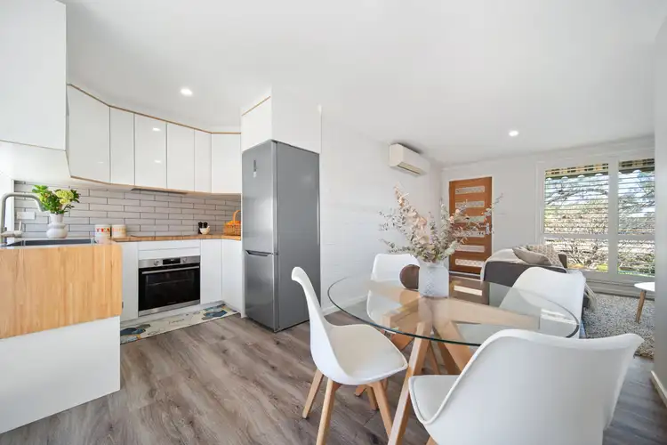 Fresh and bright, with crisp white interiors, timber-look flooring, and attractive plantation shutters, this home radiates a chic and welcoming vibe, with an open-plan living area and a modern brand new kitchen, where a timber benchtop adds natural warmth to the sleek design. Completing the layout are two good-sized bedrooms and a sophisticated, fully tiled bathroom, while a single lock-up garage, laundry room, reverse-cycle air conditioning, and solar panels add functionality.