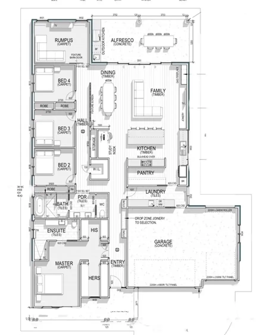 Linen VJ paneling to front porch and rear alfresco ceilings