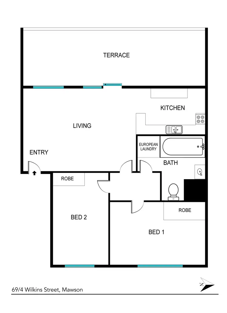 - 58sqm approx of light filled living space