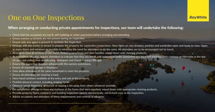 In accordance with ACT Government health guidelines, one on one inspections for Residential property will be allowed to commence at 11.59pm on Friday, 17th September 2021. To book an appointment please contact the agent.