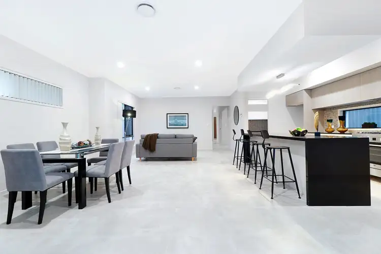Adjoining the lounge and dining area, the gourmet kitchen has been expertly designed. Boasting black stone benchtops, contrasting cabinetry, stainless steel appliances and a walk-in pantry, prepare meals here to be enjoyed indoors or out on the covered patio overlooking the fully fenced backyard.
