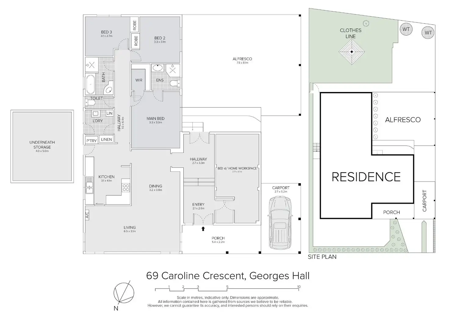 - Secure parking for six vehicles plus valuable under-house storage