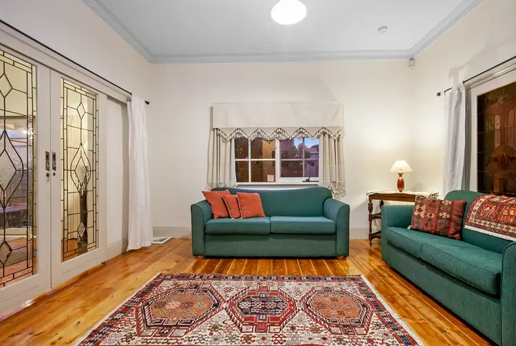 Period features are omnipresent throughout the radiant interior, with leadlight windows and beautiful high ceilings dressed with classically designed cornices and roses providing a glimpse into its period soul. Ducted heating, split-system cooling, modern custom kitchen (with recycled Spotted Gum timber benchtops, quality stainless steel appliances and excellent storage) and indoor-outdoor living, meanwhile, are a celebration of modern living.