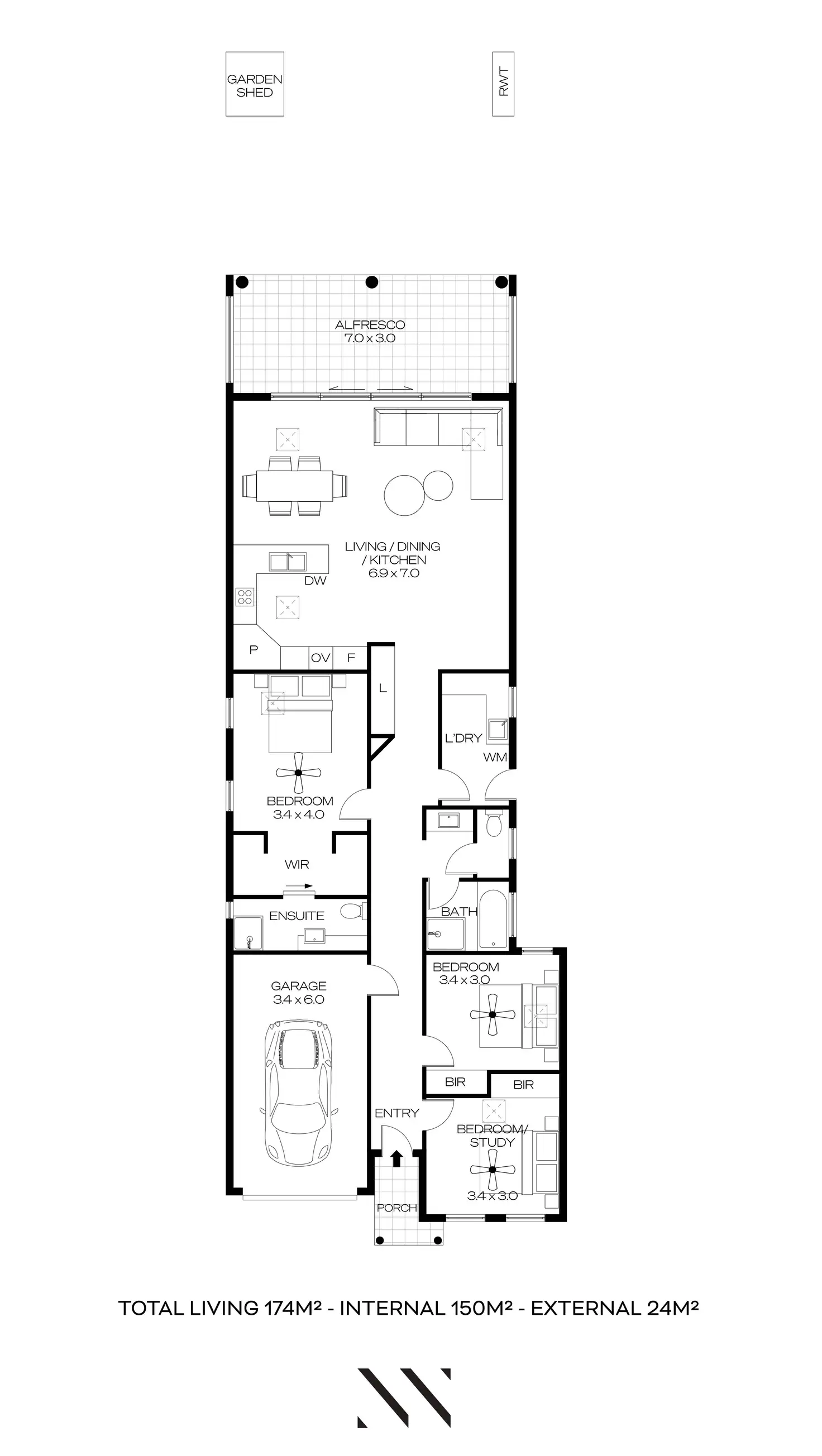 - Rainwater tank plumbed to laundry and bathroom
