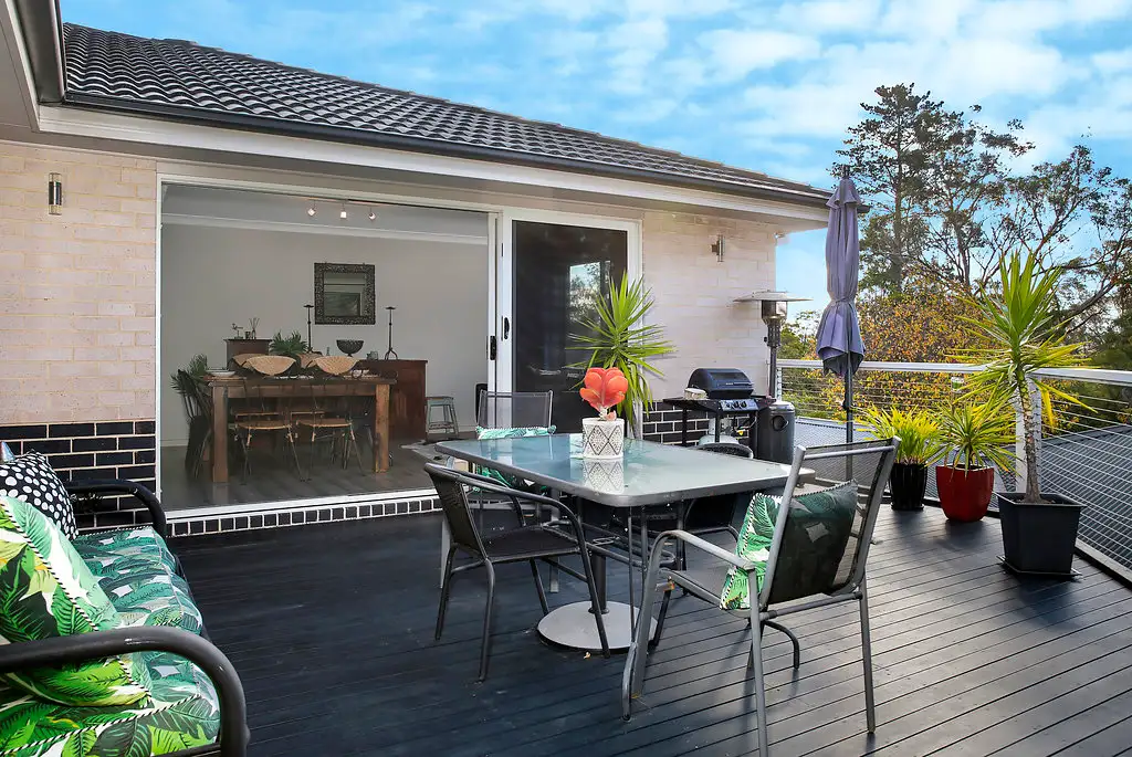 Three flexible living spaces - open plan casual, living room, dining room, sliding doors opens onto a private and protected north facing deck with views.