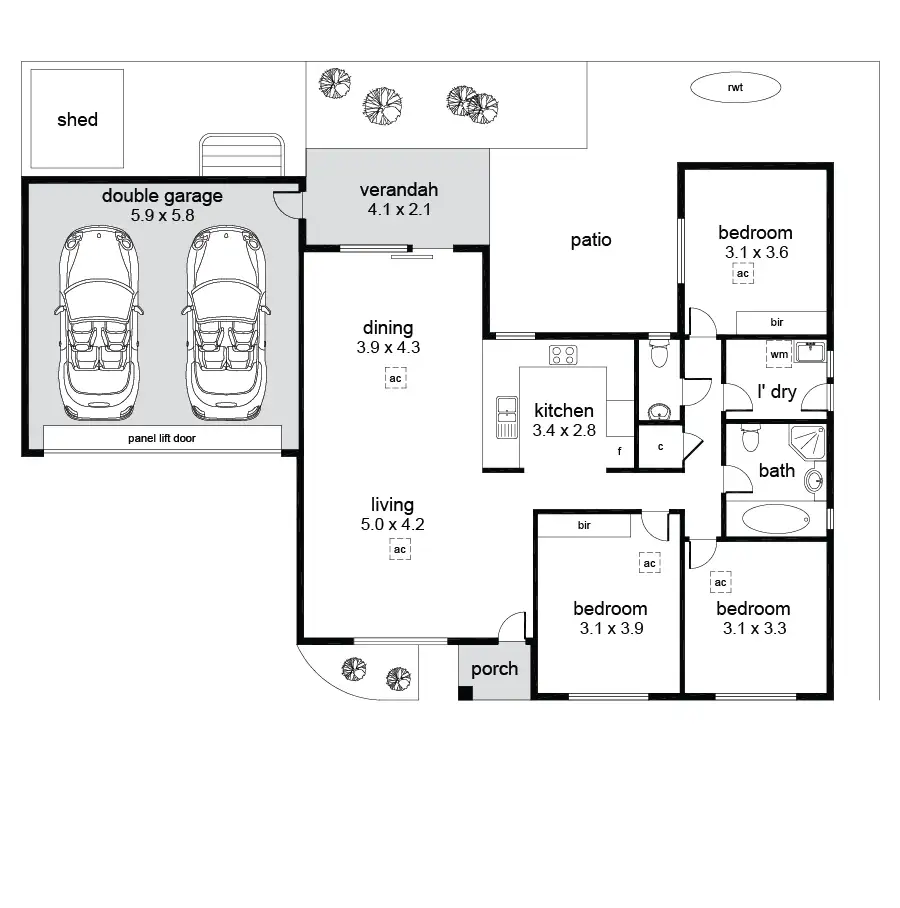 3 Bed • 1 Bath • 2 Car