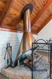 The upper level is devoted to the main bedroom and parent's retreat or 2nd living room and offers timber floors and large windows which look out over the surrounding area.