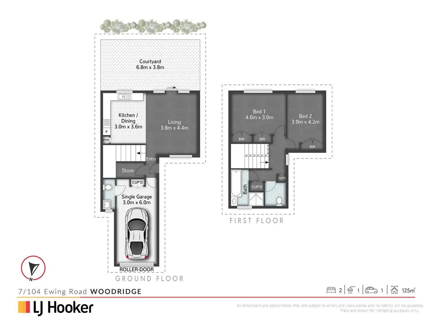 - Single lockup garage with powder room, plus tidy open-air courtyard out the back