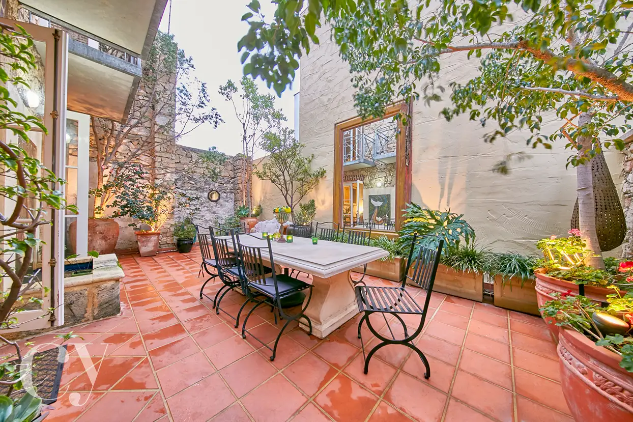 With plenty of room for outdoor dining and relaxation, this is a serene space, with high walls, water feature and garden lighting.