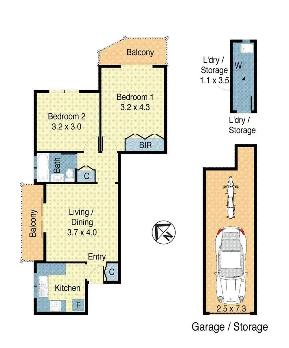 2 Bed • 1 Bath • 1 Car