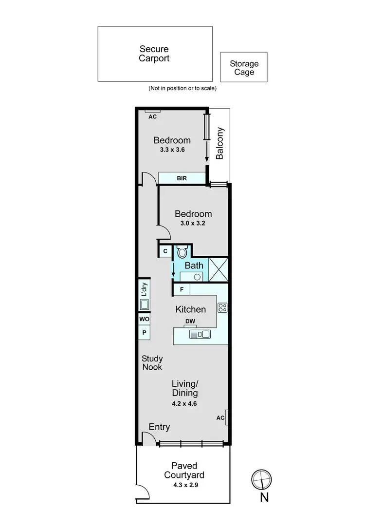 Completing the floor plan are two bedrooms, a central bathroom, a Euro laundry, study nook, secure carport and storage cage.