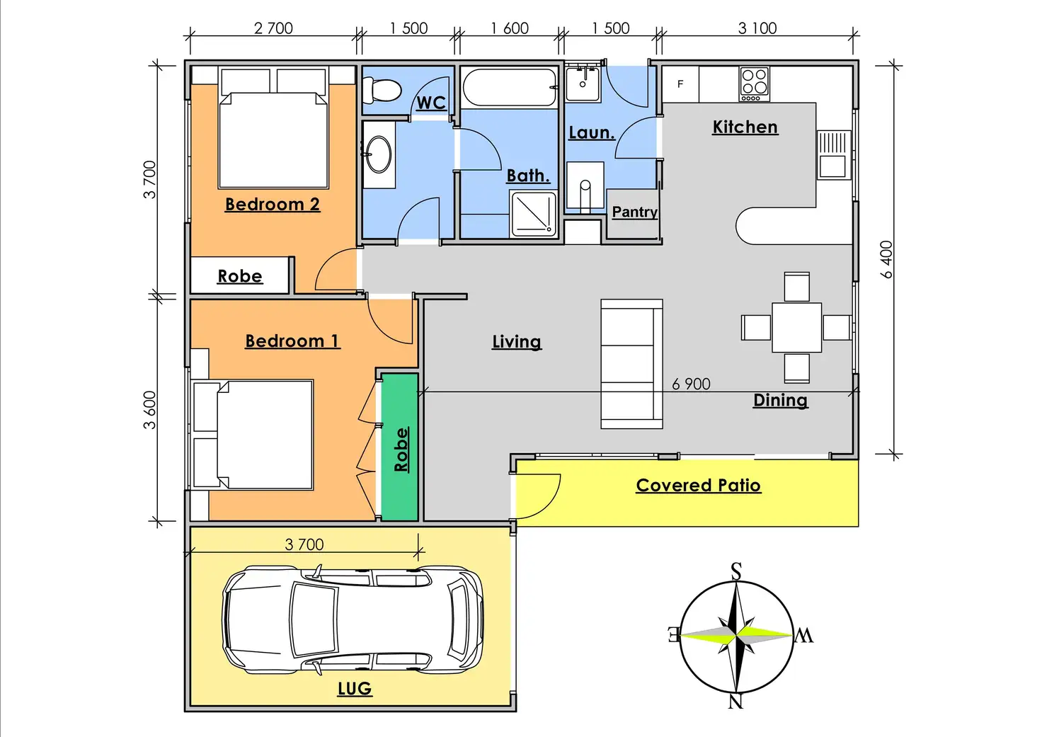 2 Bed • 1 Bath • 1 Car