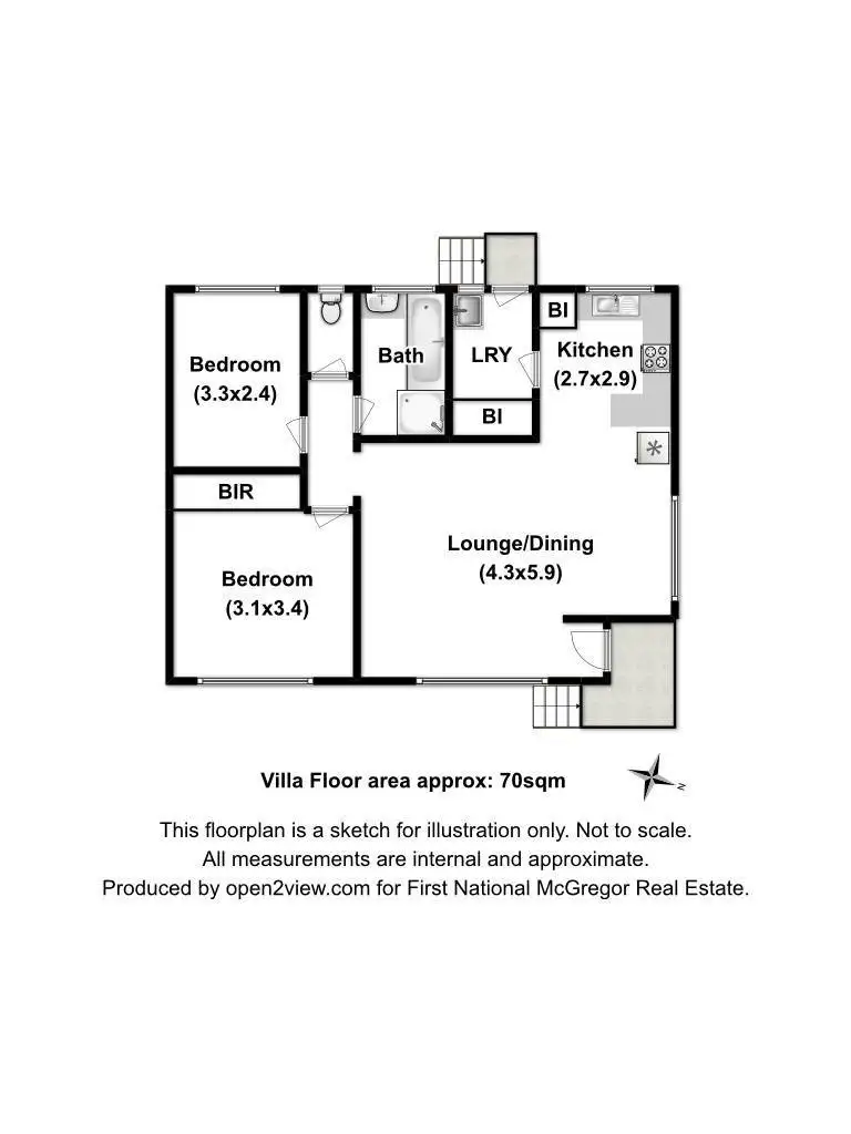 2 Bed • 1 Bath • 1 Car • 204m²