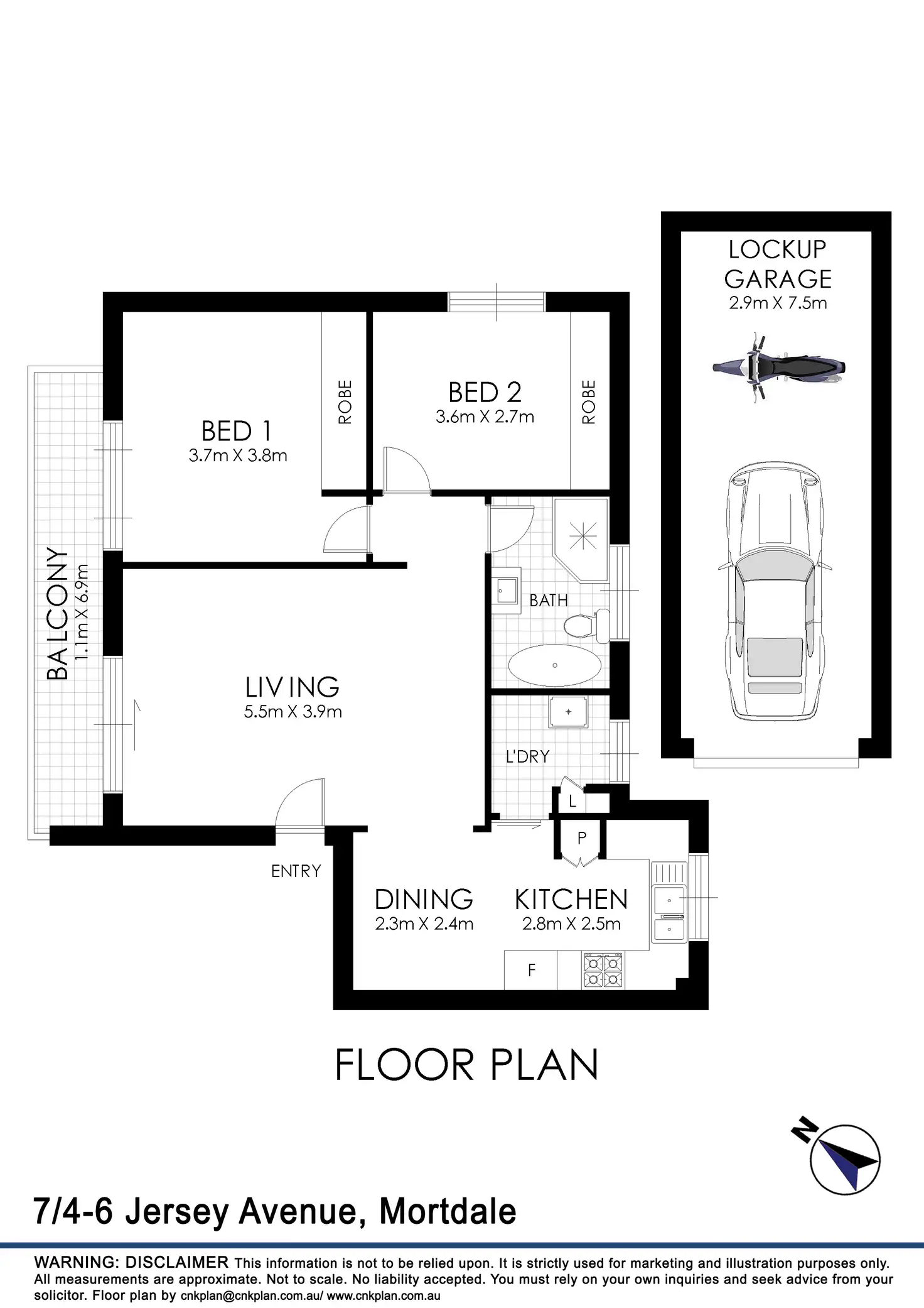 2 Bed • 1 Bath • 1 Car • 105m²