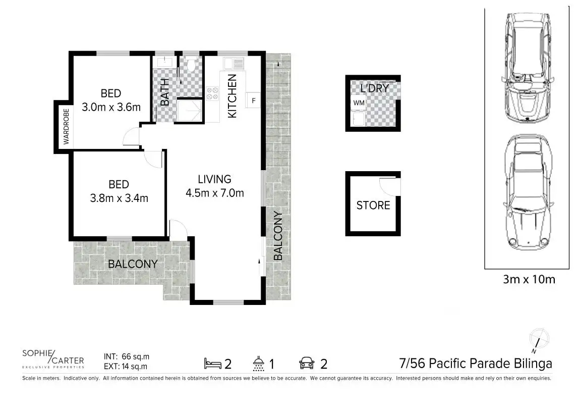 2 Bed • 1 Bath • 2 Car • 675m²