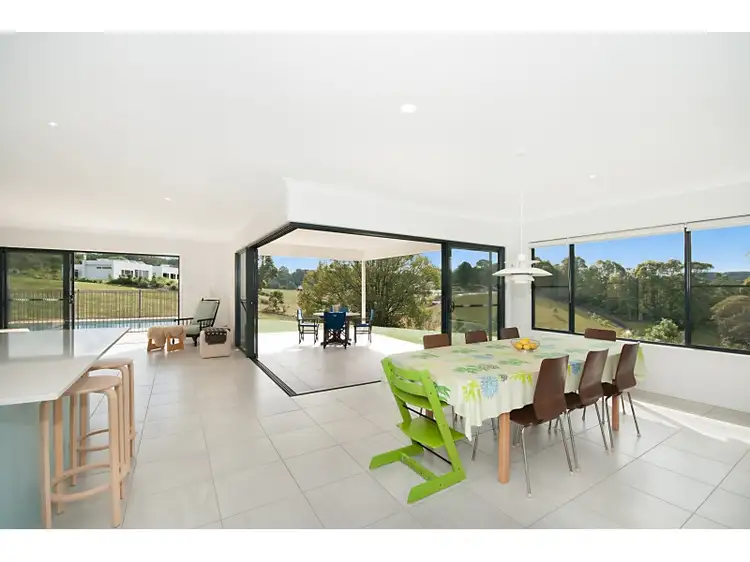 7/591 Broken Head Road is a home where indoor space merges seamlessly with the outdoor living environment and offers abundant light in all seasons. The split level floor plan features a wide entry hallway leading down to an open plan lounge/dining area with outstanding bush and valley views. Sliding glass doors seamlessly interface with a pool framed by a sandstone deck, a large patio and the great outdoors. A gourmet kitchen features generous Smartstone benchtops, Smeg appliances, gas cooktop and separate pantry. The bedrooms lead to an expansive lounge/media room which also enjoys the outlook on offer. The master bedroom enjoys stunning views and offers a dual shower ensuite and generous walk-in wardrobe. The floorplan is completed by a private office or quiet retreat for guests on the upper level, together with a huge double garage including large storage and workspace. Other features include powder room, double-insulated walls, solar hot water and ample storage closets. With high ceilings and quality finishes throughout, this home provides an ambient sanctuary which both invites and compels you to relax and enjoy life .