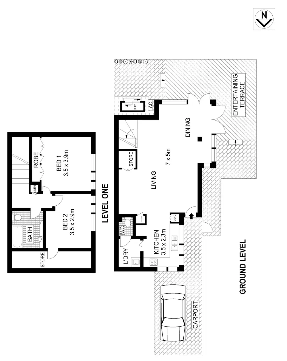 2 Bed • 1 Bath • 1 Car • 150m²