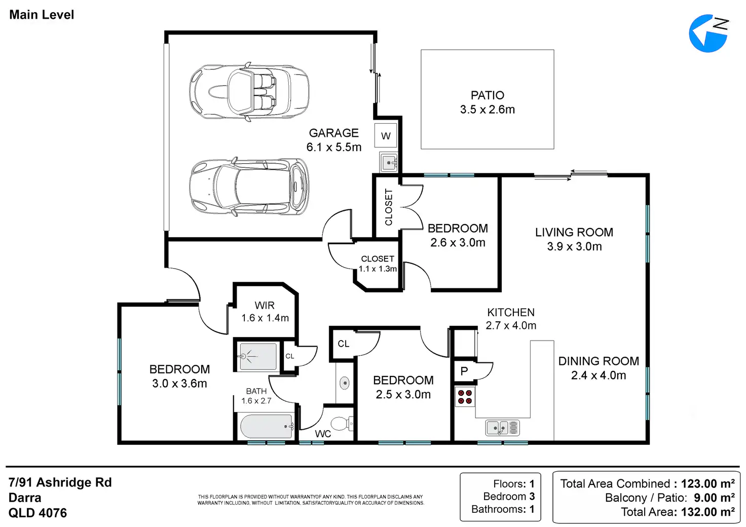 3 Bed • 1 Bath • 2 Car