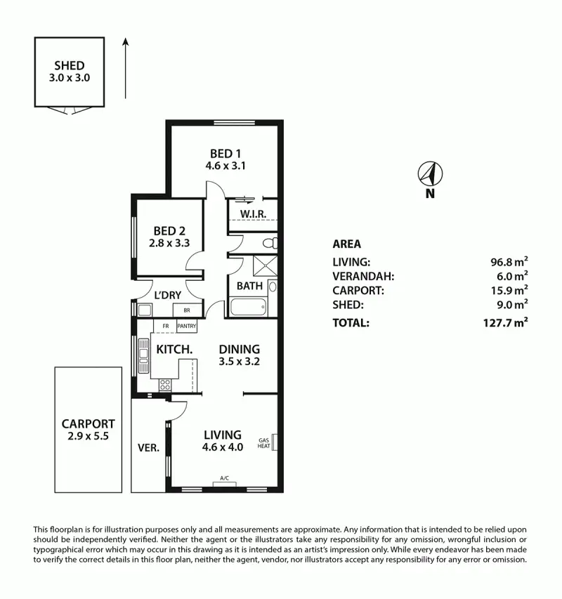 2 Bed • 1 Bath • 1 Car • 280m²