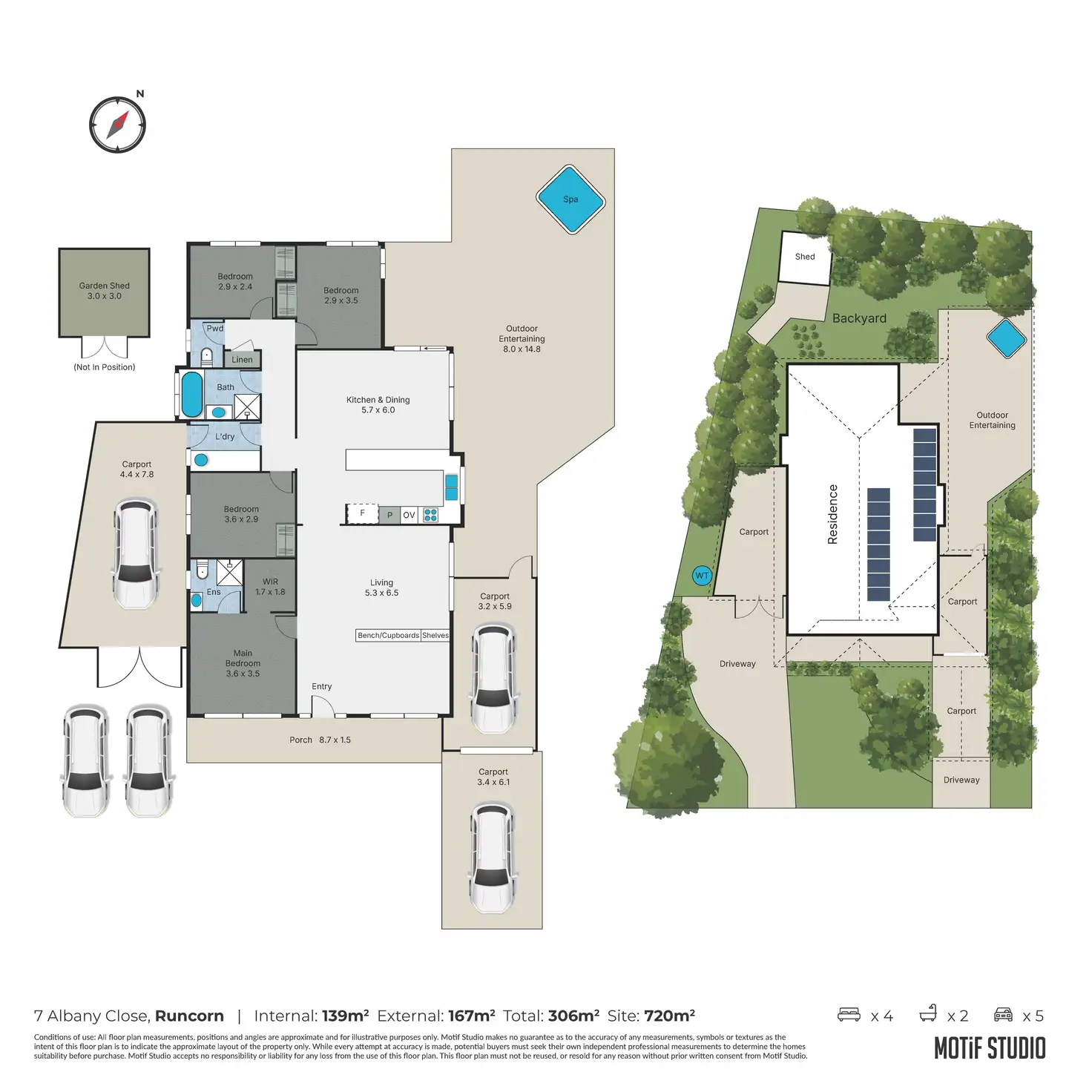 - Covered outdoor entertaining area with spa