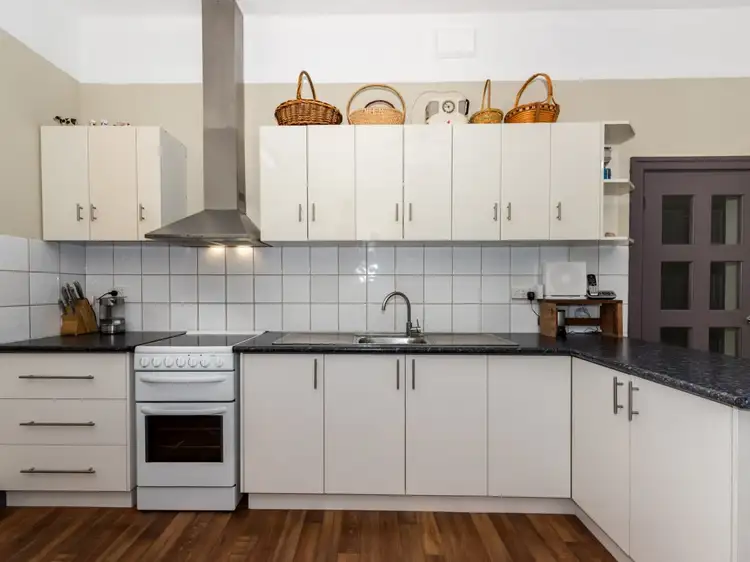 Behind a white picket fence and across the verandah, the front door opens to a high-ceilinged entry hall. Two original bedrooms are located either side of the hall and both overlook a delightful cottage garden. One bedroom has an original fire place with a gorgeous wooden mantelpiece. The hallway continues to the central living zone with kitchen, meals area and lounge room. Light and functionality rule in the kitchen with 10 white overhead cupboards, equal under bench storage, soft closing draws and a large double door pantry. A touch of colour highlights the charming fully functional Metters stove. The stove is a handy addition when entertaining or just to give your family that cosy, comfortable feeling on winter evenings.