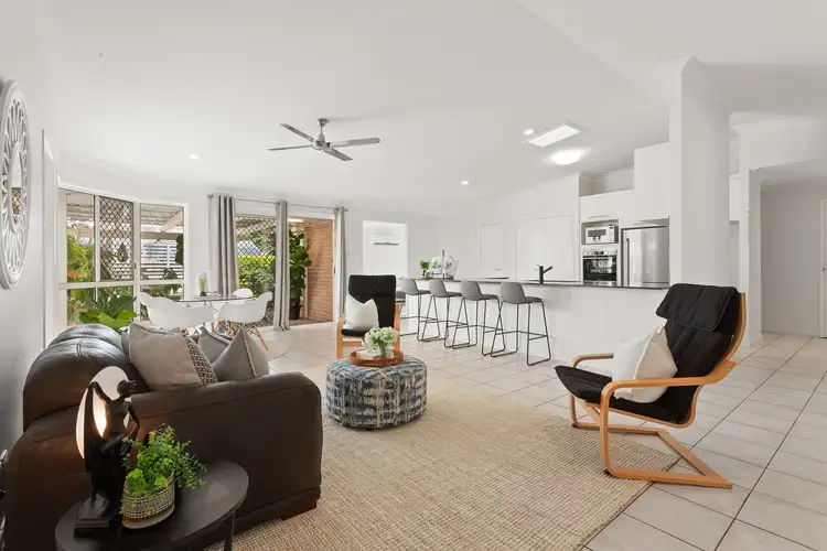 Outside a large, covered patio provides the ideal alfresco retreat, including a decked zone for the BBQ. Adjoining the fenced backyard and established gardens, there is a superb, private vantage overlooking the large in-ground pool with tropical landscaping to enhance "holiday at home" vibes!