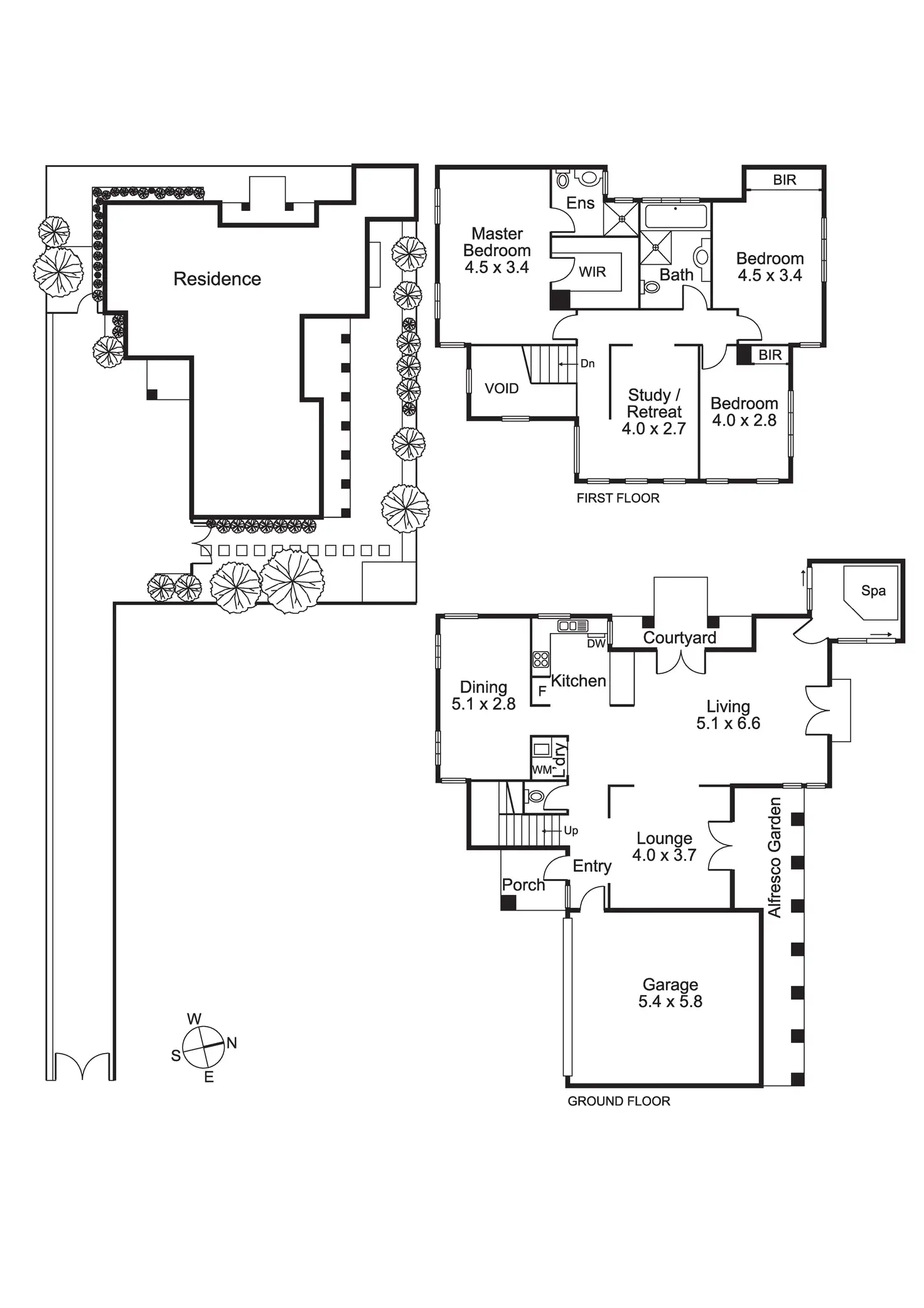 The first-floor sleeping level offers an intimate trio of generously sized and robed bedrooms alongside a luxurious bathroom with a large bath and walk-in shower. Well-appointed and proportioned, the main bedroom is graced with walk-in robes and a private ensuite.