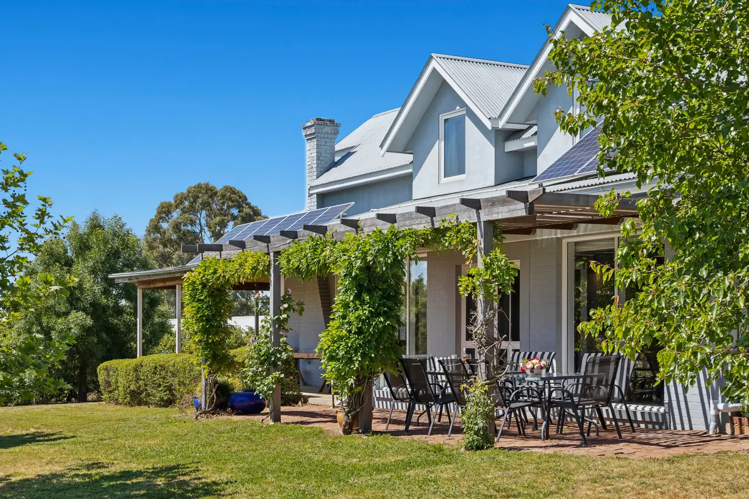 Outdoors, the magic continues. Wide, wrap-around verandas offer the perfect spot to unwind in privacy while overlooking the landscaped cottage gardens. A vegetable patch, solar power system, and tank water plumbed to the house complement all town services — ensuring a sustainable lifestyle without compromise.