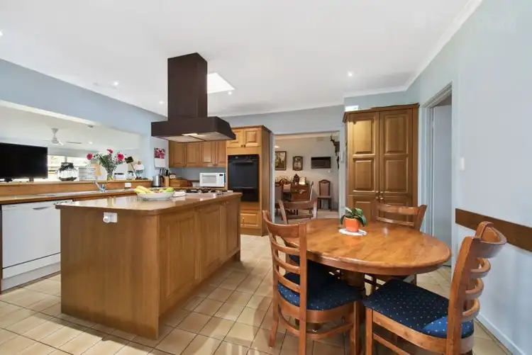 This space effortlessly leads through to a large separately zoned dining room where you can entertain on a large scale or simply enjoy casual meal time with the kids. The beautiful custom built timber kitchen will please the fussiest of chef's with ample bench and cupboard space, skylight, dishwasher and stainless steel gas cooking. A central island bench will be the ideal place for family to congregate or the kids can chat to you from the breakfast bar that overlooks the large living room.
