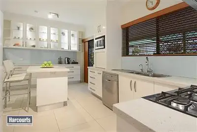 Property condition: Renovated, Excellent Property Type: House House style: Highset Garaging / carparking: Double lock-up Construction: Plaster, Timber, Brick veneer and Brick Joinery: Timber Roof: Tile Insulation: Ceiling Walls / Interior: Brick, Cavity, Gyprock Flooring: Timber, Polished and Carpet Window coverings: Drapes, Blinds (Timber) Electrical: TV points, TV aerial Property Features: Safety switch, Smoke alarms Kitchen: New, Designer, Modern, Dishwasher, Separate, Separate cooktop, Separate oven, Rangehood, Extractor fan, Double sink, Breakfast bar, Microwave, Gas bottled, Pantry and Finished in (Granite) Living area: Formal dining, Formal lounge Main bedroom: King and Walk-in-robe Bedroom 2: Double, Built-in / wardrobe and Balcony / deck Bedroom 3: Double and Built-in / wardrobe Bedroom 4: Double and Built-in / wardrobe Extra bedrooms: 2 Additional rooms: Family, Office / study, Rumpus, Pool/billiard room, Other Main bathroom: Bath, Separate shower, Additional bathrooms Family Room: Wetbar and Ceiling fans Laundry: Separate Views: Urban Aspect: East Outdoor living: Entertainment area (Covered, Paved, Concrete), Garden, BBQ area (with lighting, with power), Deck / patio, Verandah Fencing: Fully fenced Land contour: Flat to sloping Grounds: Tidy, Landscaped / designer, Manicured Garden: Garden shed (Number of sheds: 1) Sewerage: Mains Locality: Close to transport, Close to schools, Close to shopsLand details