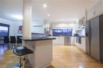 - Double French doors reveal an open-plan family and meals area with split-system air-conditioning off a grand kitchen that comes complete with sparkling granite bench tops, an Ariston gas cook top, Ariston oven, range hood, a Bosch dishwasher, ample storage, tiled splashbacks, a breakfast bar and ocean views from the sink