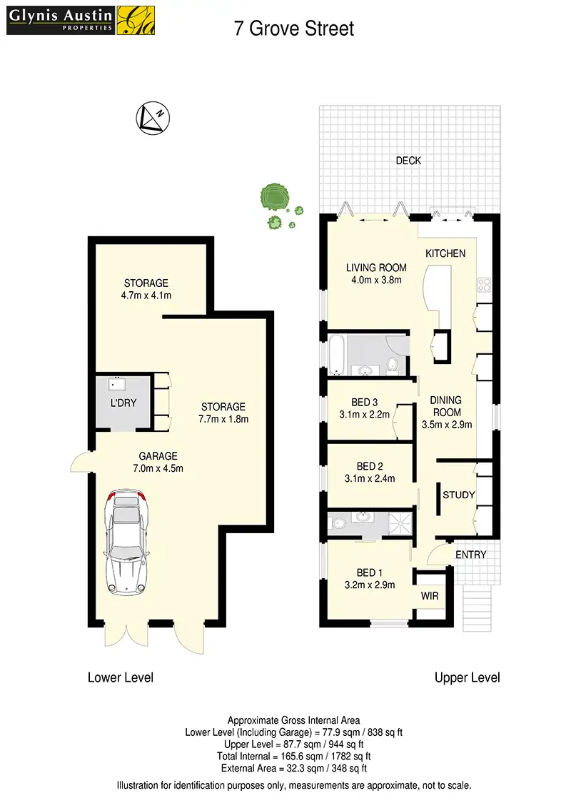* One car garage with two off street parking spaces