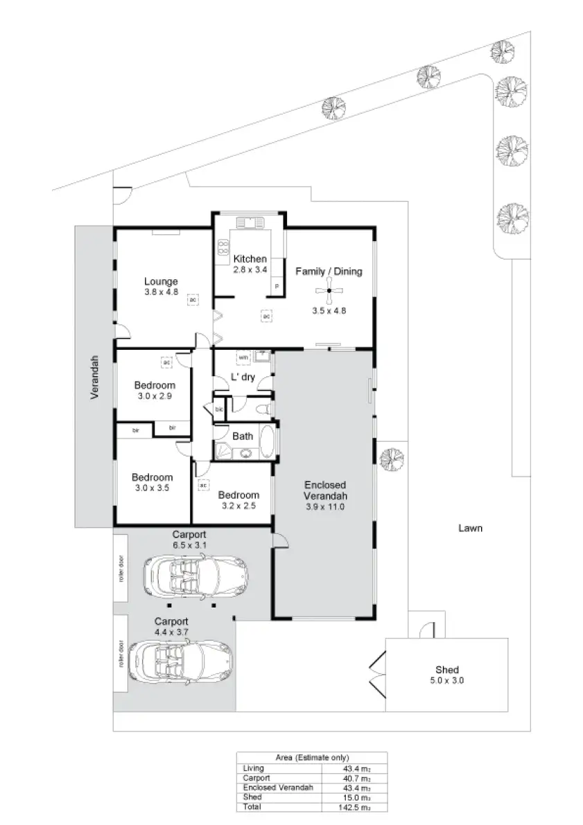 3 Bed • 1 Bath • 2 Car • 666m²