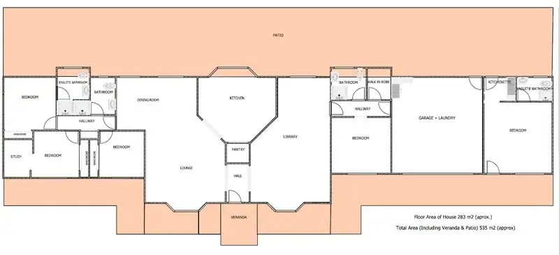 On this side of the house there are 3 bedrooms and 2 bathrooms, one being an ensuite.