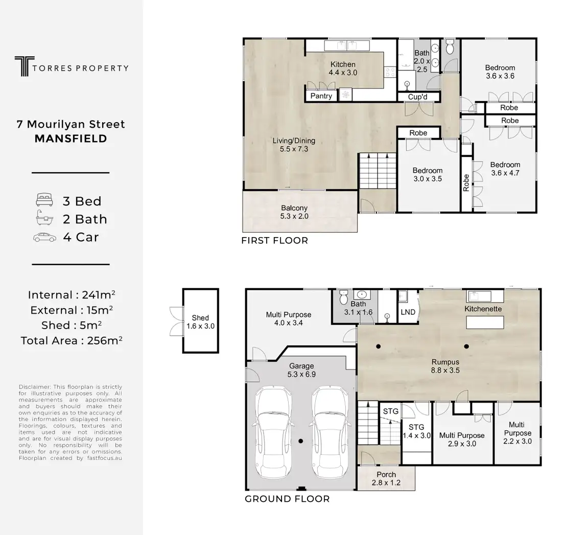 Disclaimer: Whilst every care is taken in the preparation of the information contained in this marketing, Torres Property will not be held liable for any errors in typing or information. All interested parties should rely upon their own enquiries in order to determine whether or not this information is in fact accurate.