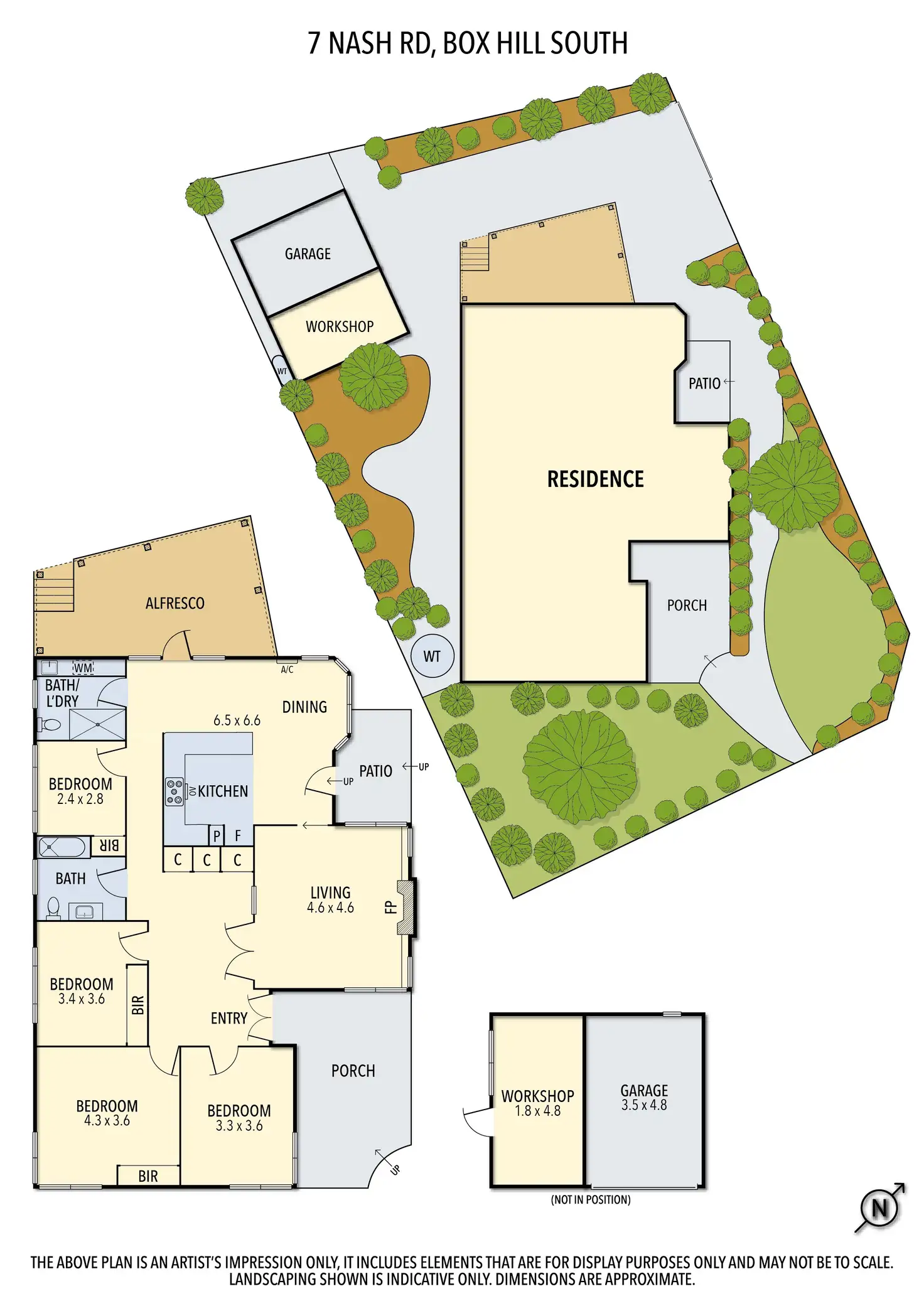The home further distinguishes itself with a suite of premium amenities, including ducted heating, air-conditioning, and custom built-in shelving in the lounge. Added conveniences such as gated backyard access with remote controller and an auxiliary driveway leading to a single-car garage plus workshop amplify the property's allure.