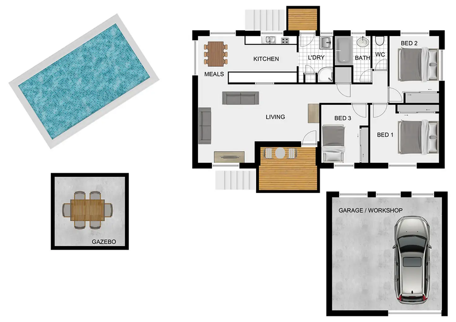3 Bed • 1 Bath • 2 Car • 637m²