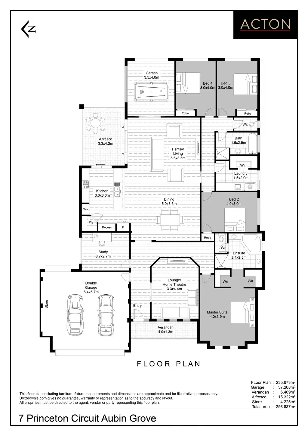 - Open plan living area with polished hardwood flooring leading to the outdoor alfresco area and games room
