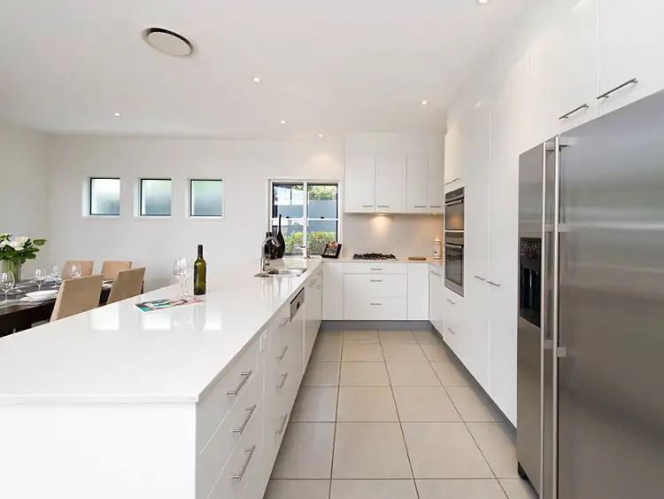 The gourmet kitchen is state of the art and showcases smooth stone benches, European appliances including dual ovens, and custom cabinetry. Designed with the home chef in mind there is an abundance of bench space and storage creating a beautiful yet practical space.
